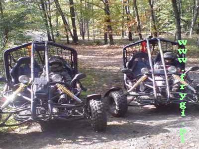 Kierowcą żółtej "frygi" (patrz wstążka) - Bartosz Jędrak KASIURA - lat 11, kierowcą czerwonej "frygi" (patrz wstążka) - Wojciech Czarnecki WOJZEK - lat 12. Ja z Komarem siedzieliśmy i czuwaliśmy na miejscach dla pasażerów. Chłopaki spisali się na medal.